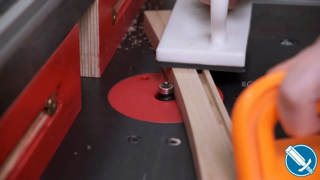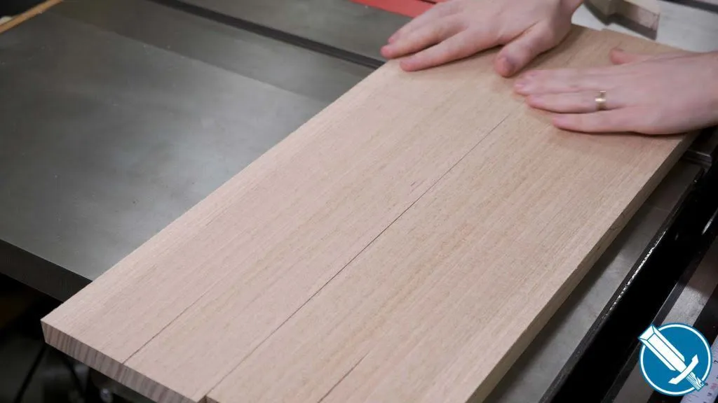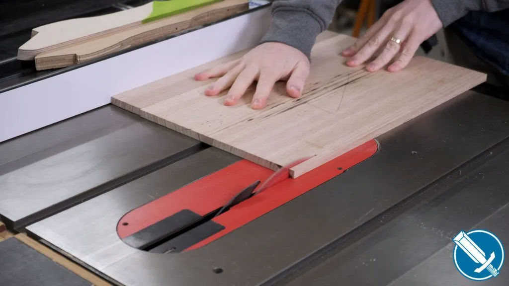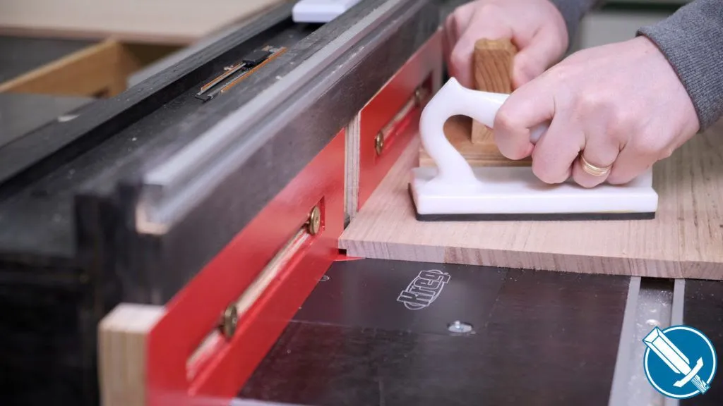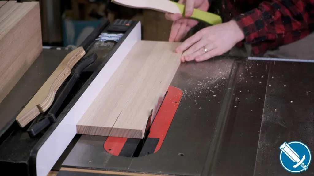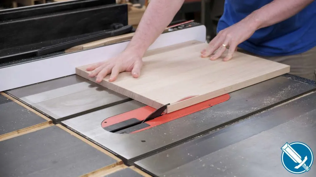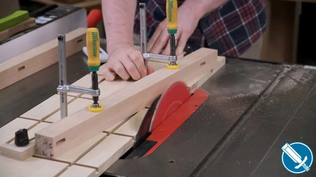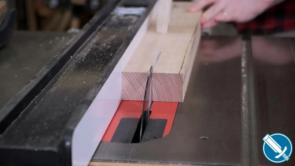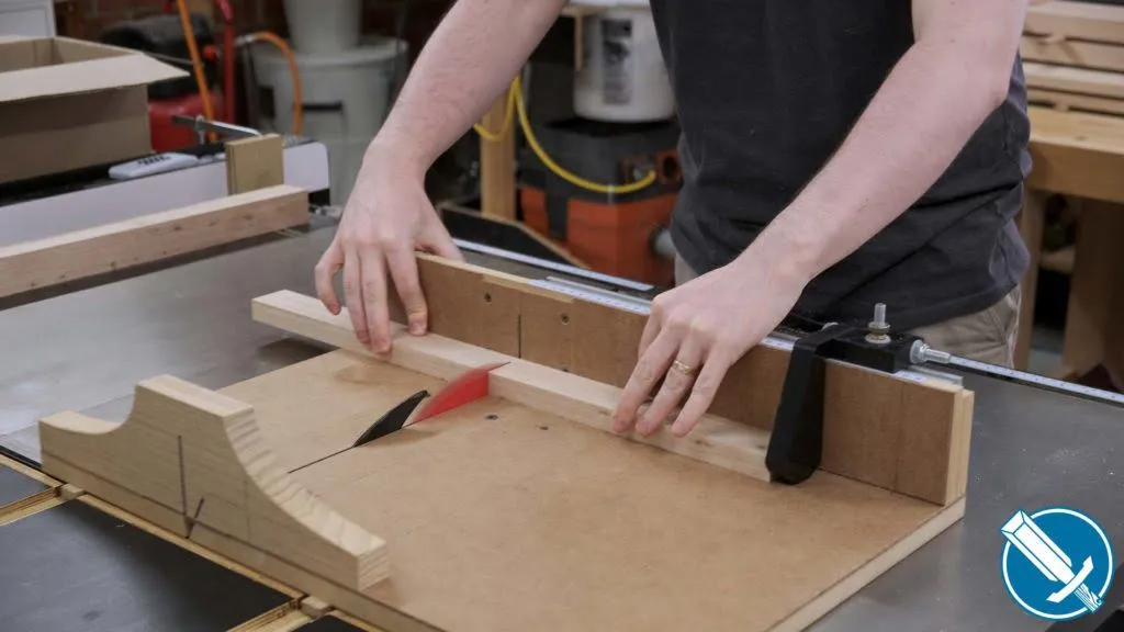 To cut everything to length, I’m using a crosscut sled on the table saw. Notice I’m referencing off a stop on the fence. At no time am I contacting the fence AND saw blade, as that would lead to binding issues.
