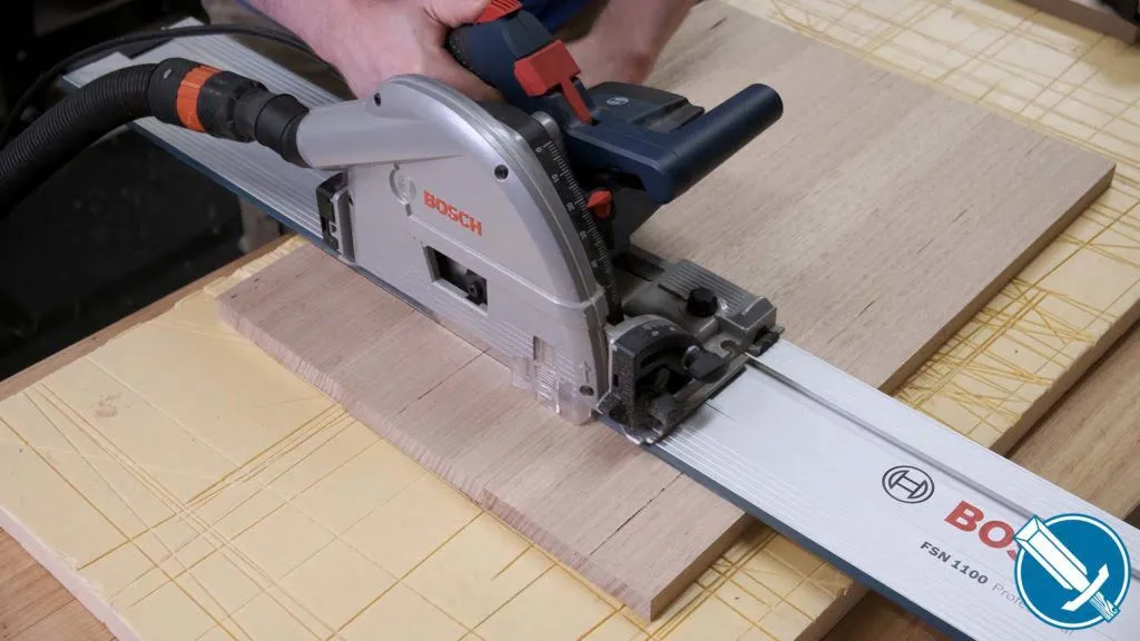 Neither end of the board is square, but the long edges are at least straight and parallel with each other. If I had a larger crosscut sled, I would have used that to square up one end first. Instead, I just marked a square line for the tracksaw, then the measurements for the other end can be taken from there. A regular circular saw with a guide will work fine too.