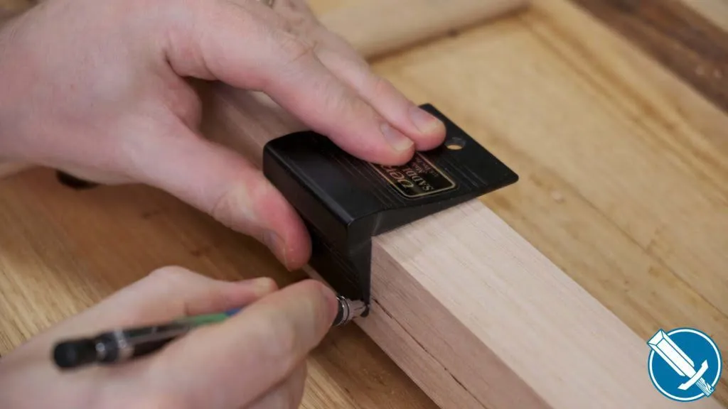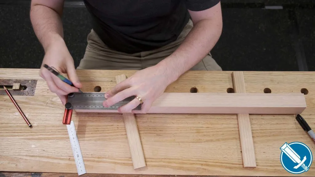 A saddle square, like this one from Veritas, makes transferring lines around corners for the mortises on each leg a real cinch.