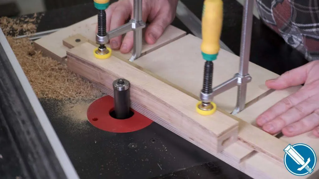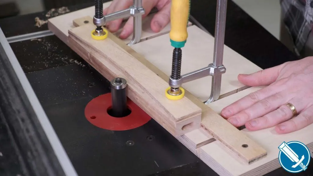 The apron and template can be clamped onto this jig, which is basically just a mini version of the tapering jig I made the other week without a mitre runner. You can make something similar with toggle clamps.
